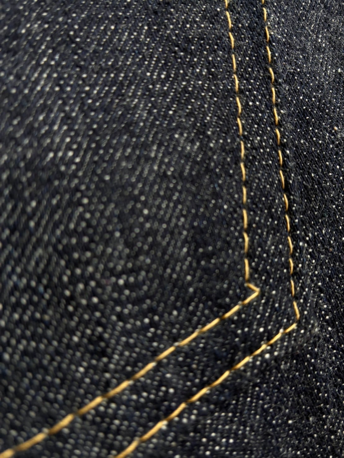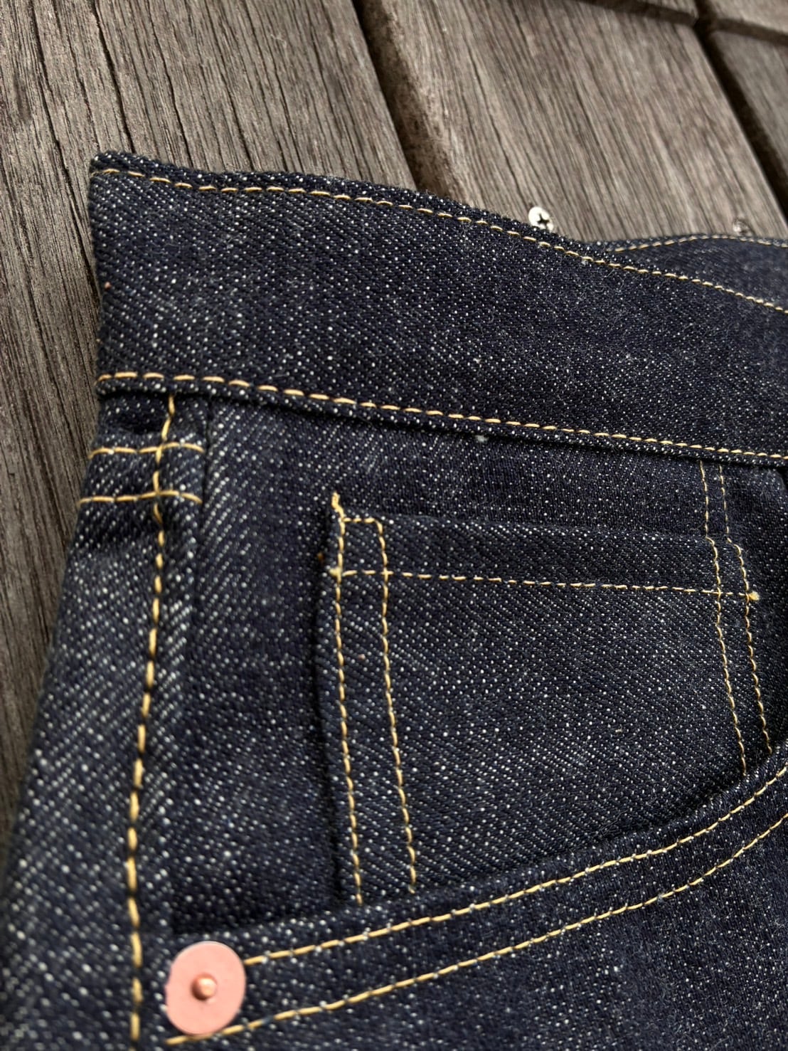 バックポケットのステッチワークも同工場の製品に多く見られる特徴を持っています。