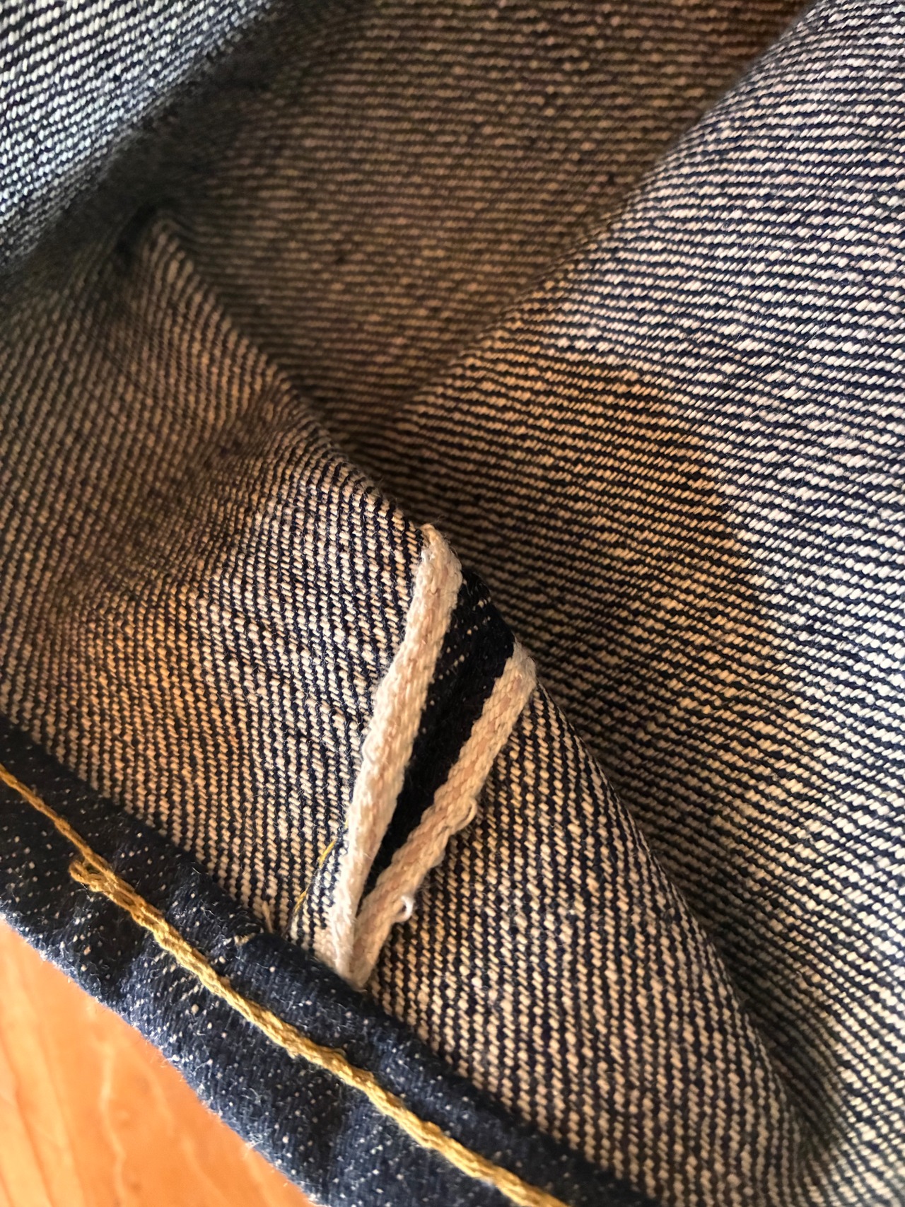 戦時下において歪な縫製による501xxが多く生産されている某工場で縫製された個体であることが推定されています。